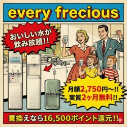 every frecious(エブリィフレシャス)は人気No.1の浄水型ウォーターサーバー。選べる4種のサーバーにBEAMSデザイン新登場。PFAS除去率99.9%以上で安心。WEB限定で実質2ヶ月無料&乗換え16,500円キャッシュバック【2025年12月NEW】。