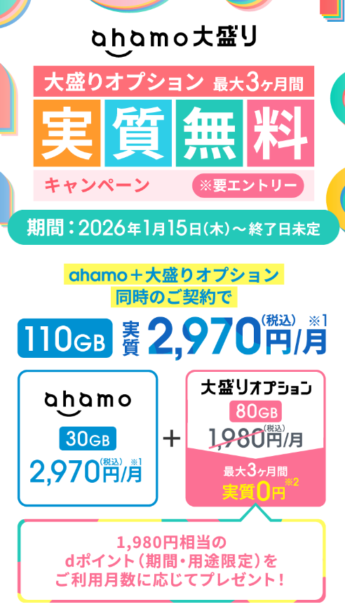 110GBが最大3ケ月間 2,970円/月に