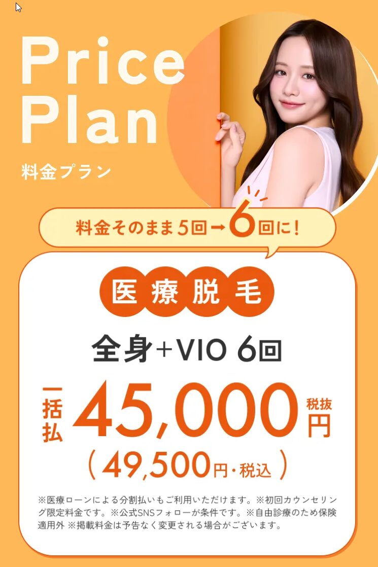 全身医療脱毛 VIO込5回 【一括価格 48,000円(税抜)52,800円(税込)♪】