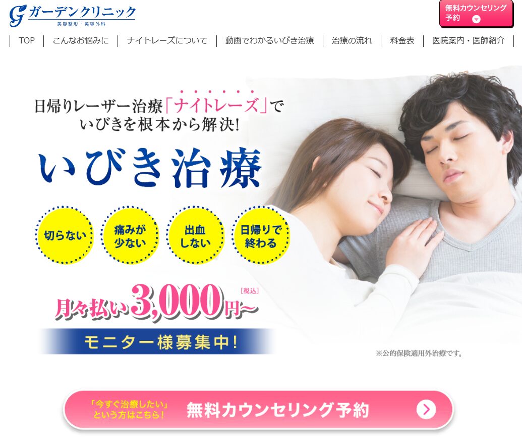 そんないびきの悩みを抱える方々の間で、今「切らない・痛くないレーザー治療」が爆発的に支持されています。