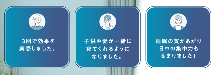 個人差はありますが、多くの方が3回程度で症状の改善を実感されています。