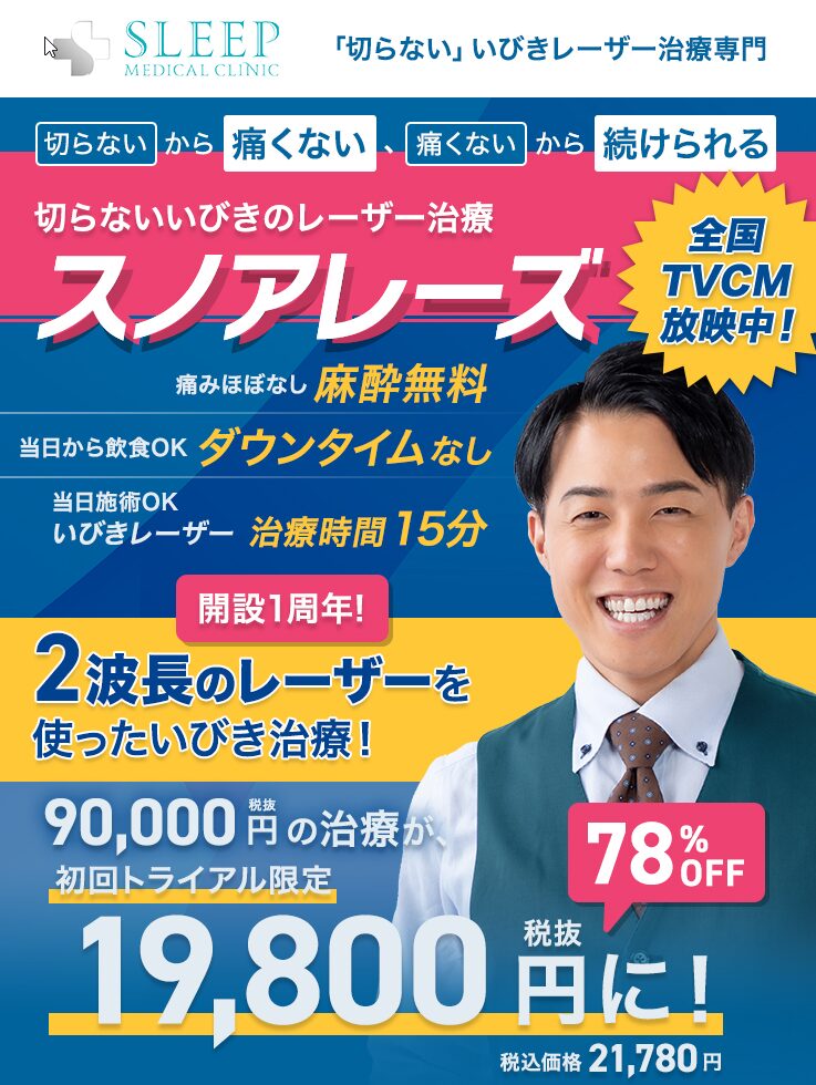 『いびきレーザー治療』約30分の施術で根本改善【初回トライアル 9,900円(税込)♪】